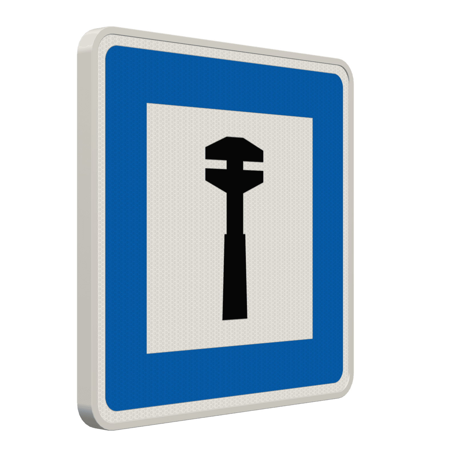 Dieses Schild ist ein blaues Quadrat mit einem Hammer in der Mitte.