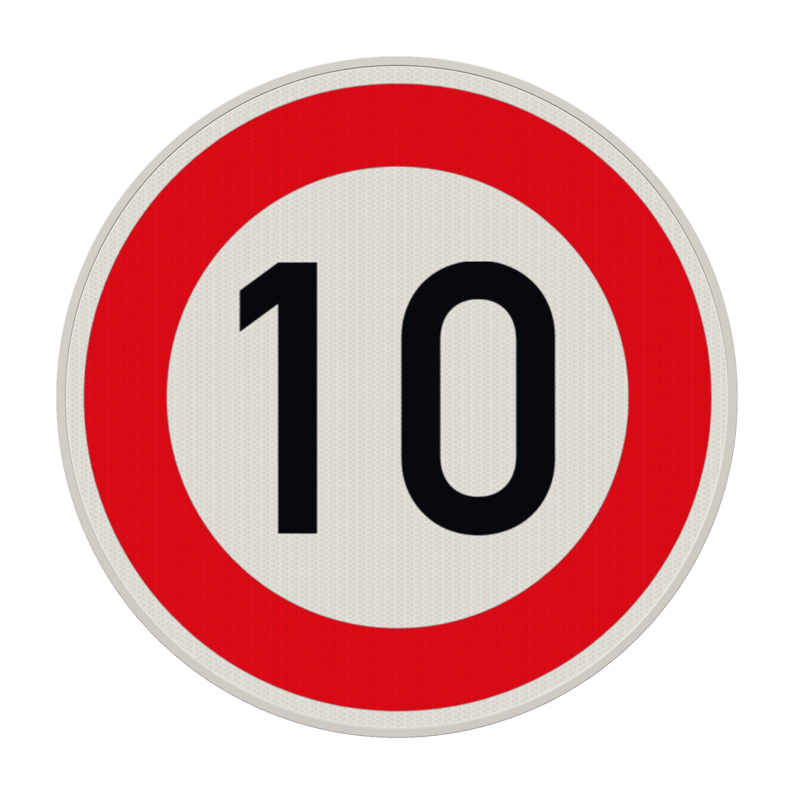 Alle Vorschriftzeichen mit rotem Rand sind generell Ge- oder Verbote. Rote Schilder mit Zahlen geben in der Regel die zulässige Höchstgeschwindigkeit vor. HIer handelt es sich um das Tempo-10 Schild.