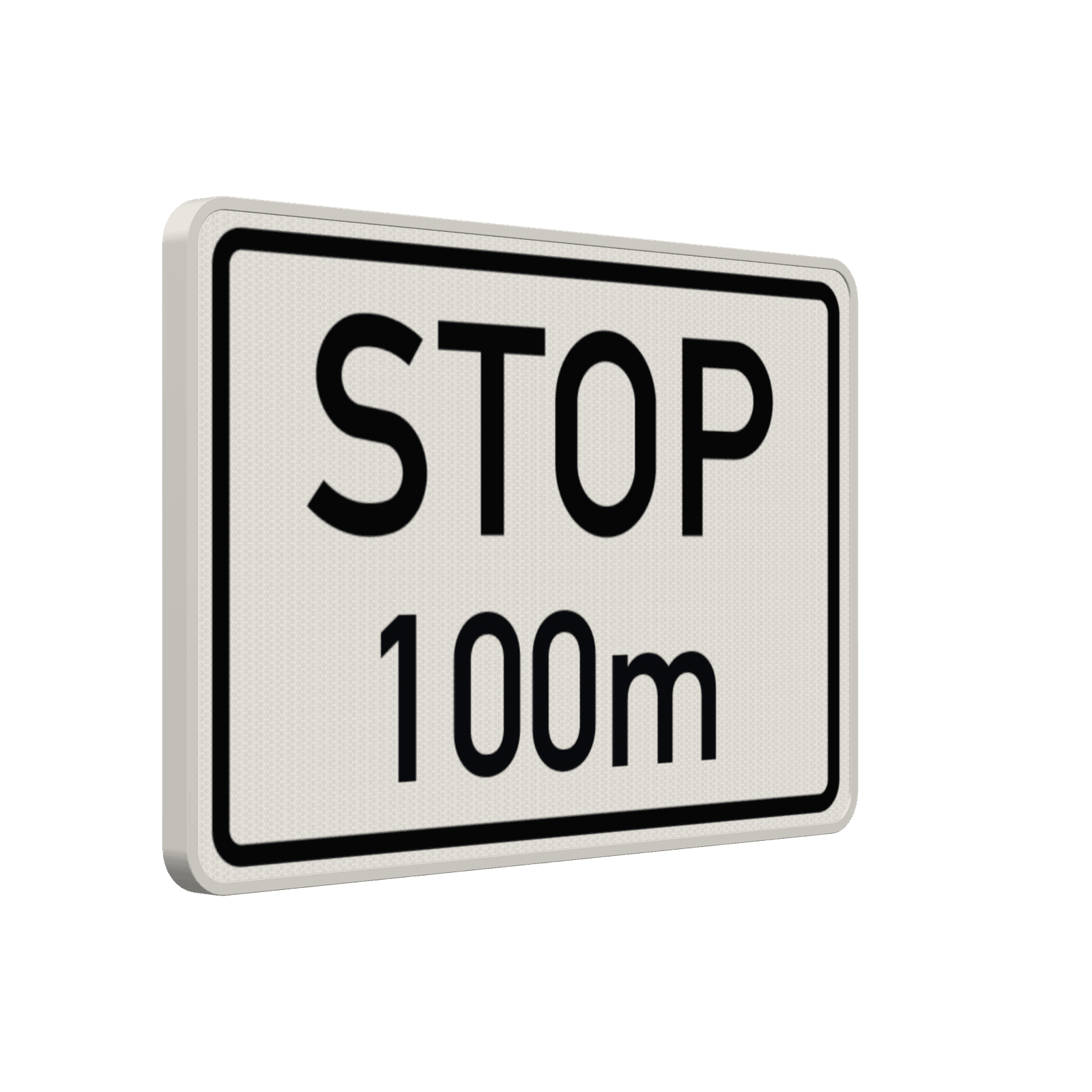 STOP nach 100 m - Verkehrszusatzzeichen ergänzen die Bedeutung des Hauptverkehrszeichens unter dem sie angebracht sind.
