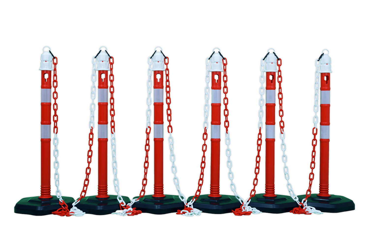 Kunststoff Absperrpfosten mit Kette Rot/Weiß mit fester Fußplatte – Set 6 Stück