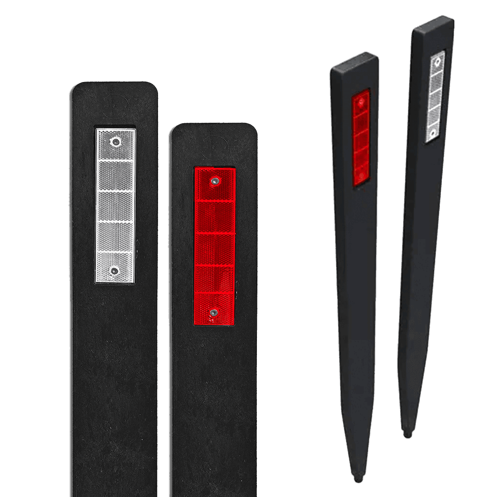 Bei Dunkelheit oder schlechtem Wetter ist der Straßenrand oft schwer zu sehen. Diese Leitpfosten aus 100 % recyceltem Kunststoff sind leicht zu montieren und haben einen roten sowie weißen Reflektor. Durch die spitze Unterseite lassen sie sich ganz einfach in den Boden stecken.