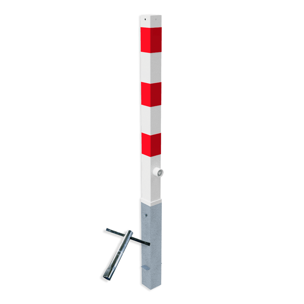 Absperrpfosten Stahl 70x70mm rot weiß - herausnehmbar mit Bodenhülse